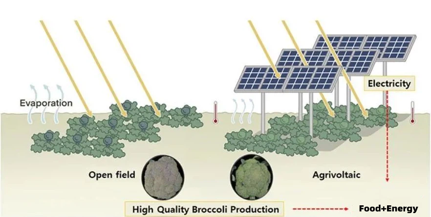 Het is al enige tijd bekend dat er een omgekeerde correlatie bestaat tussen de temperatuur van een zonnepaneel en de elektriciteitsproductie: hoe kouder het paneel hoe hoger de elektriciteitsproductie. Omwille van het hitte-eilandeffect – het fenomeen dat stadskernen een hogere temperatuur hebben dan minder bebouwde of onbebouwde zones – is waargenomen dat identieke zonnepanelen minder elektriciteit produceren in de stedelijke gebieden. Met die kennis vroeg men zich af in welke mate het mogelijk was om zonnepanelen op landbouwgrond te plaatsen. Uit onderzoek op enkele prototypes bleek dat niet enkel de zonnepanelen een verhoogde elektriciteitsopbrengst leverden, maar ook een gunstig effect hebben op de groei van de onderliggende gewassen. Lichtschuwe gewassen hebben aan 4 à 6 uur direct zonlicht per dag voldoende. Meer licht kan de plant net beschadigen en de grond onnodig verder uitdrogen. Doordat het teveel aan zonlicht werd opgevangen door de zonnepanelen, lag het daggemiddelde aan ontvangen zonlicht dichter bij de ideale standaard van het gewas.